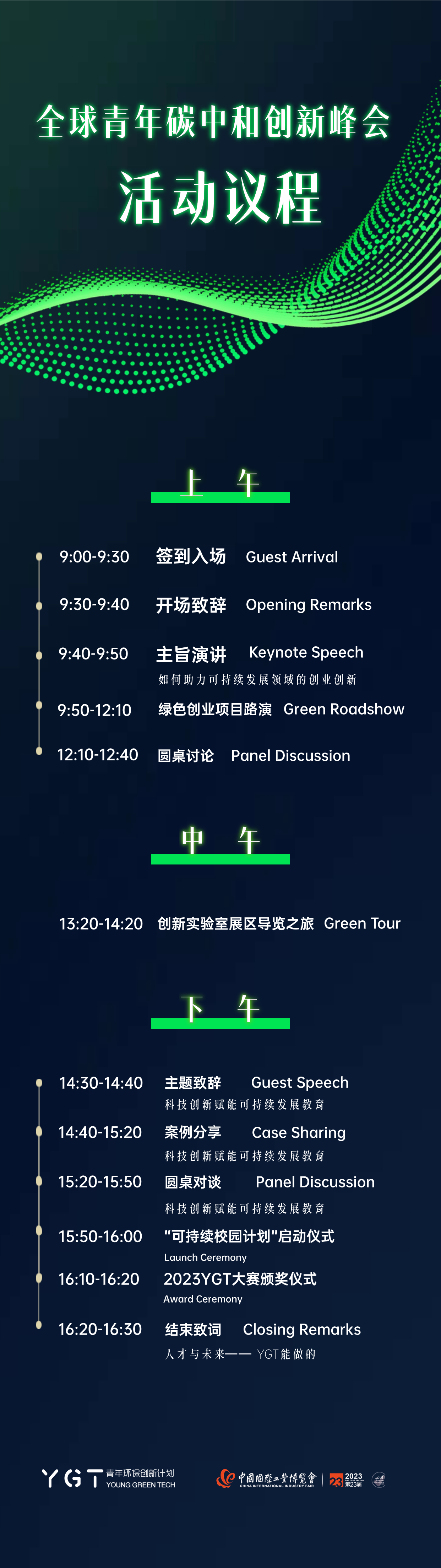 ** The 2023 Global Youth Carbon Neutrality Innovation Summit ** is jointly created by YGT and * the 23rd China International Industry Expo *. Through green innovative enterprise roadshows, thematic roundtable discussions, green exhibition area Green Tour,"Sustainable Campus Plan" launch ceremony and other links, the latest technological achievements in the field of green innovation are presented in a panoramic manner, deeply supporting carbon neutrality and sustainable development.