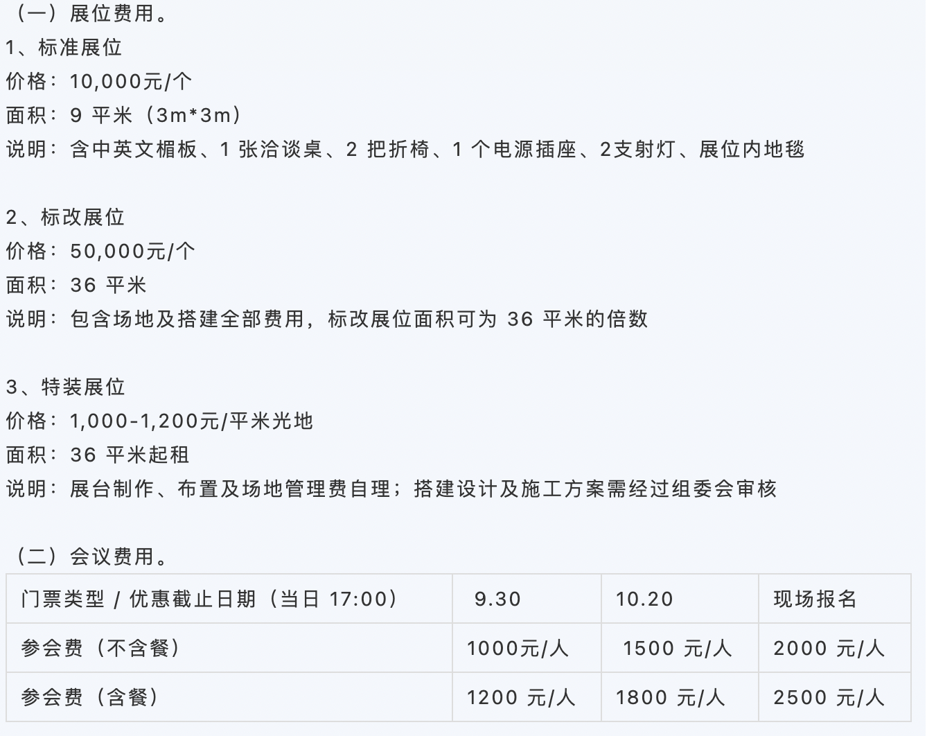 Booth and Conference Fees