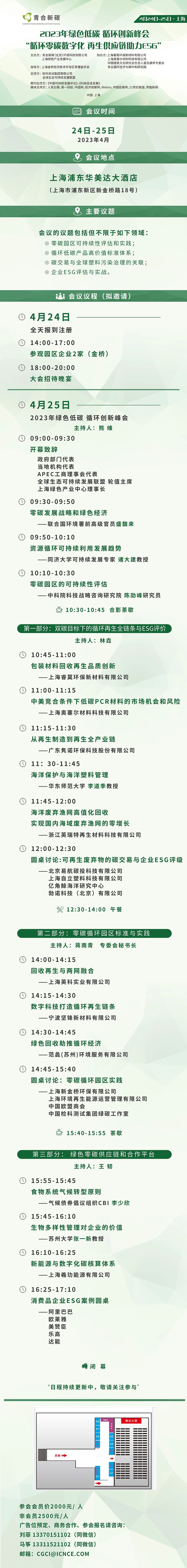 2023年4月24日-25日在上海举行“2023年绿色低碳 循环创新峰会”。本届年会以‘循环零碳数字化 再生供应链助力ESG’为主题,聚焦循环经济在产业发展的布局,特别是塑料再生产业和产品应用,推动循环经济产业化。利用数字化技术和碳减排核算在再生供应链中的应用,与品牌企业的零碳和ESG战略挂钩。